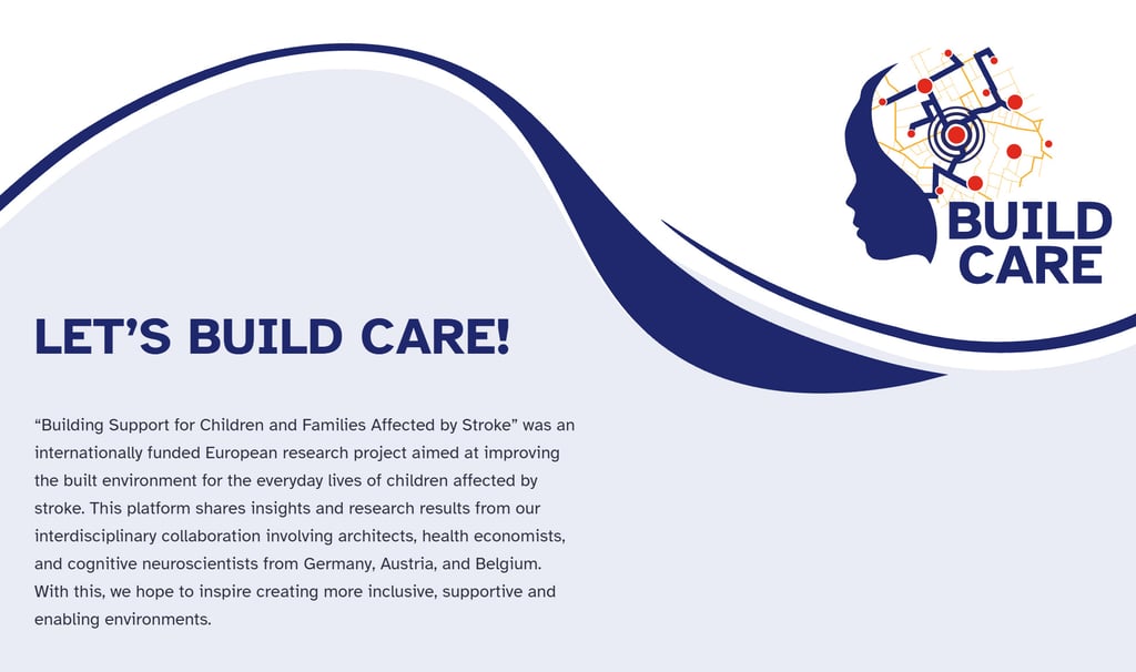 The platform brings together a range of resources developed through the project. These include a persona-set based on project findings, insights into findings across different everyday environments such as the home, school, and healthcare settings, and additional resources that may be useful for understanding and responding to the spatial implications of childhood stroke. Alongside materials developed within BUILD CARE, the platform also includes selected external resources that may be helpful to those engaging with the topic in research, practice, education, or everyday life.